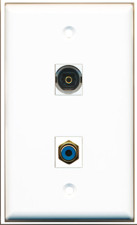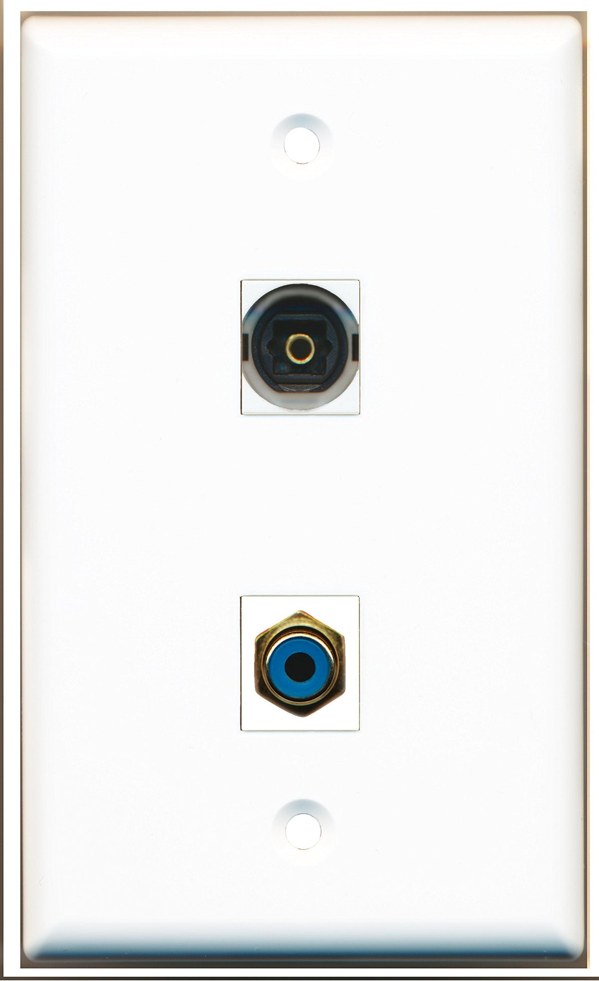 RiteAV - 1 Port RCA Blue 1 Port Toslink Wall Plate White - Bracket Included