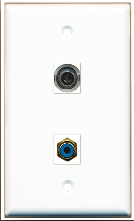 RiteAV - 1 Port RCA Blue 1 Port 3.5mm Wall Plate White - Bracket Included