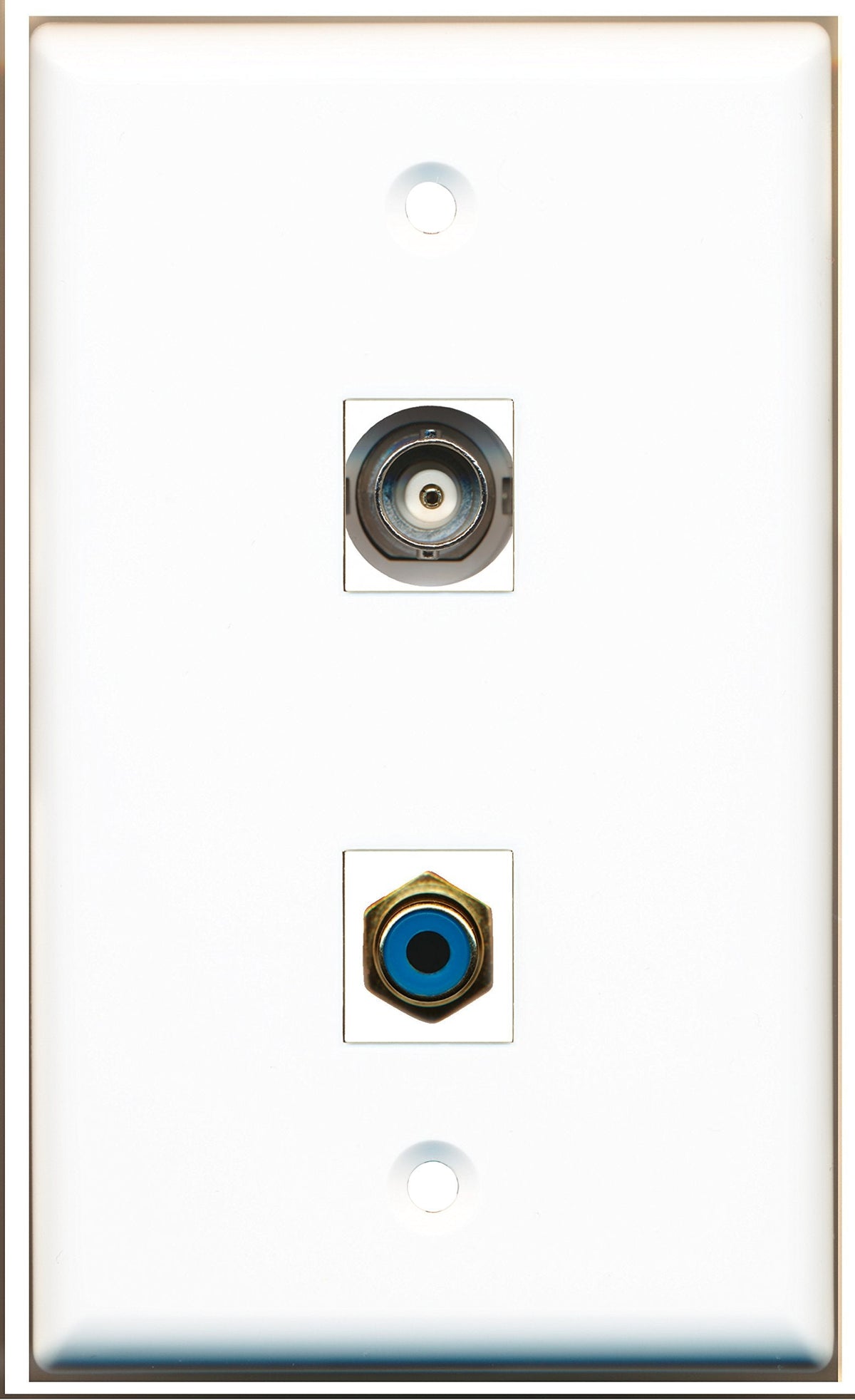 RiteAV - 1 Port RCA Blue 1 Port BNC Wall Plate White - Bracket Included