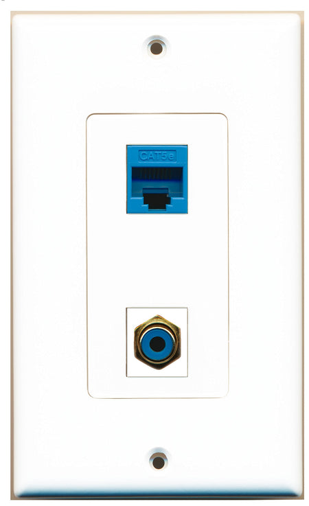 RiteAV 1 Port RCA Blue 1 Port Cat5e Blue Wall Plate OVERSIZED White