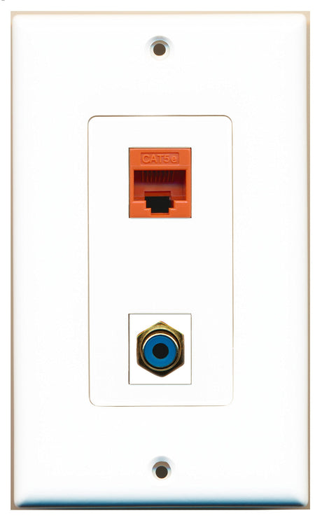 RiteAV 1 Port RCA Blue 1 Port Cat5e Orange Wall Plate OVERSIZED White