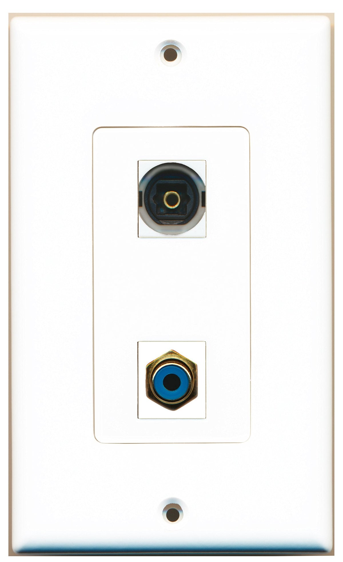 RiteAV 1 Port RCA Blue 1 Port Toslink Wall Plate OVERSIZED White