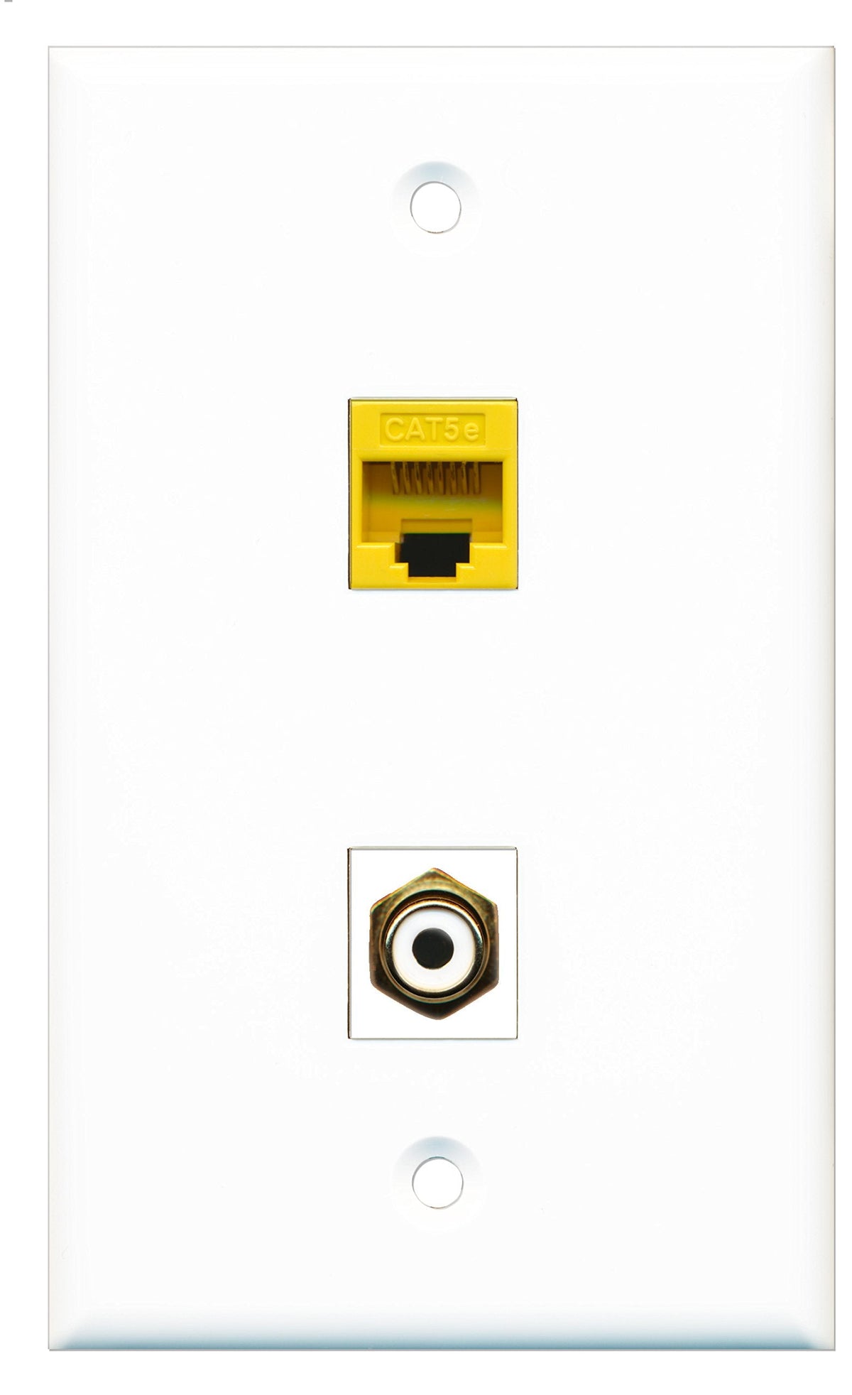 RiteAV - 1 Port RCA White 1 Port Cat5e Yellow Wall Plate White - Bracket Included