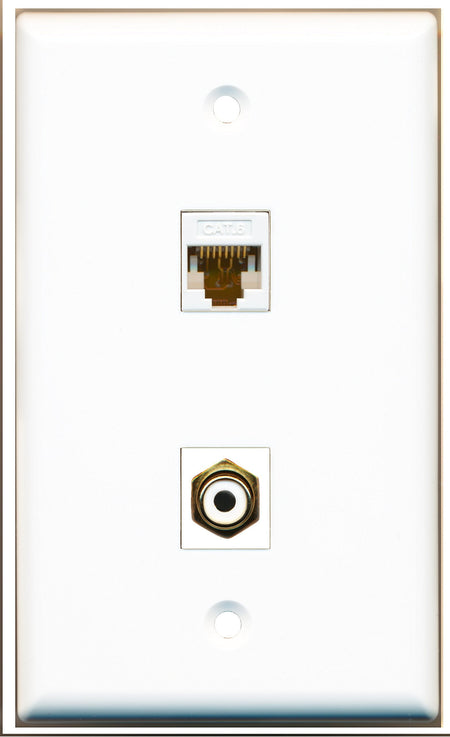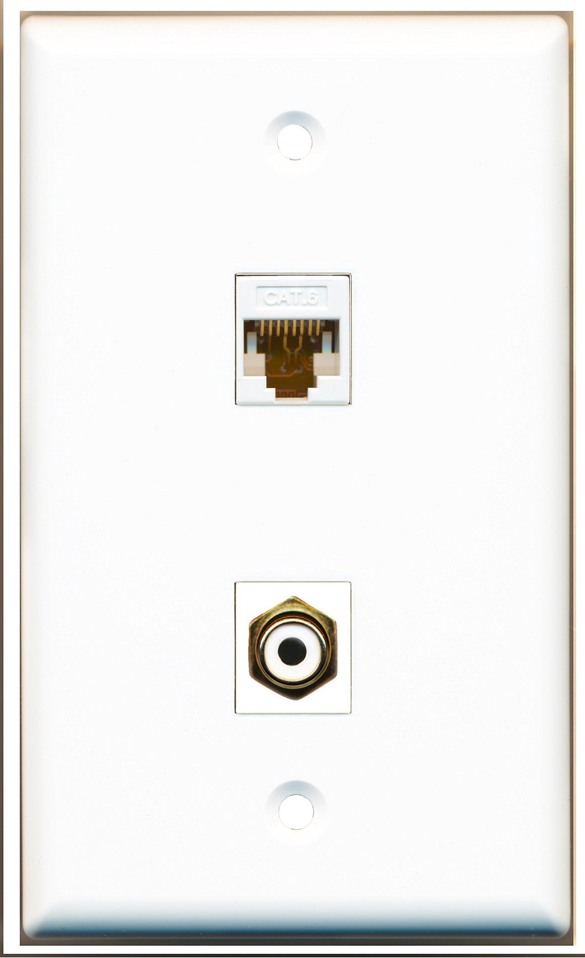 RiteAV - 1 Port RCA White 1 Port Cat6 White Wall Plate White - Bracket Included