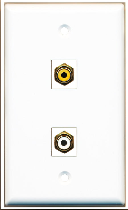RiteAV - 1 Port RCA White 1 Port RCA Yellow Wall Plate White - Bracket Included