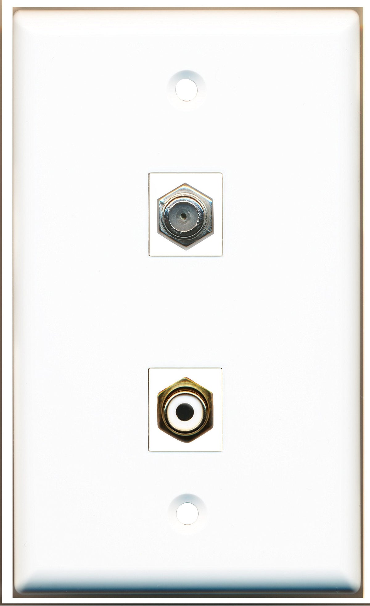 RiteAV - 1 Port RCA White 1 Port Coax Wall Plate White - Bracket Included
