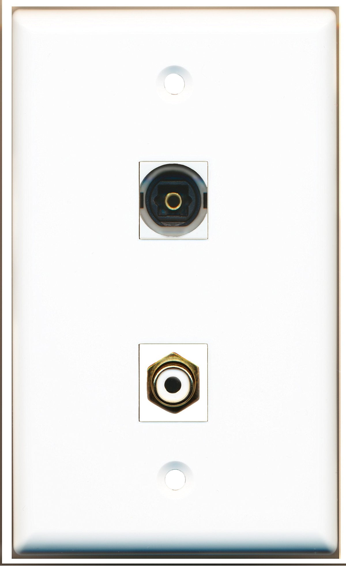 RiteAV - 1 Port RCA White 1 Port Toslink Wall Plate White - Bracket Included