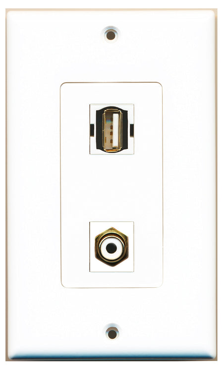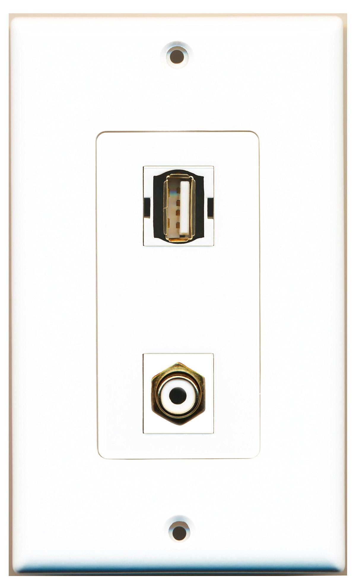 RiteAV 1 Port RCA White 1 Port USB A-A Wall Plate OVERSIZED White