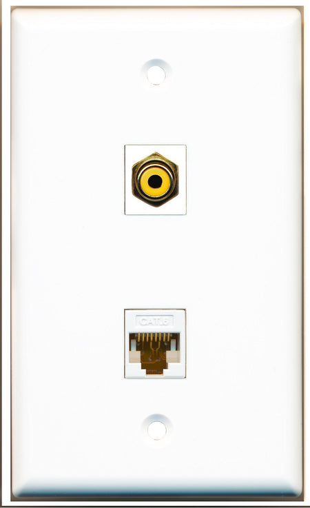 RiteAV - 1 Port RCA Yellow 1 Port Cat6 White Wall Plate White - Bracket Included