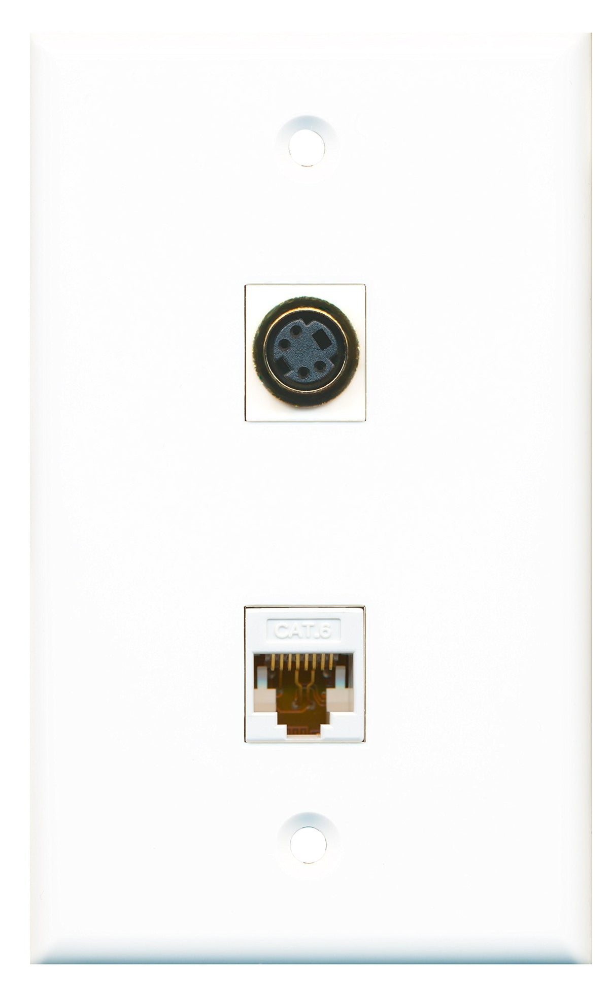 RiteAV - 1 Port S-Video 1 Port Cat6 White Wall Plate White - Bracket Included