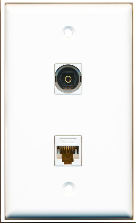 RiteAV - 1 Port Toslink 1 Port Cat6 White Wall Plate White - Bracket Included