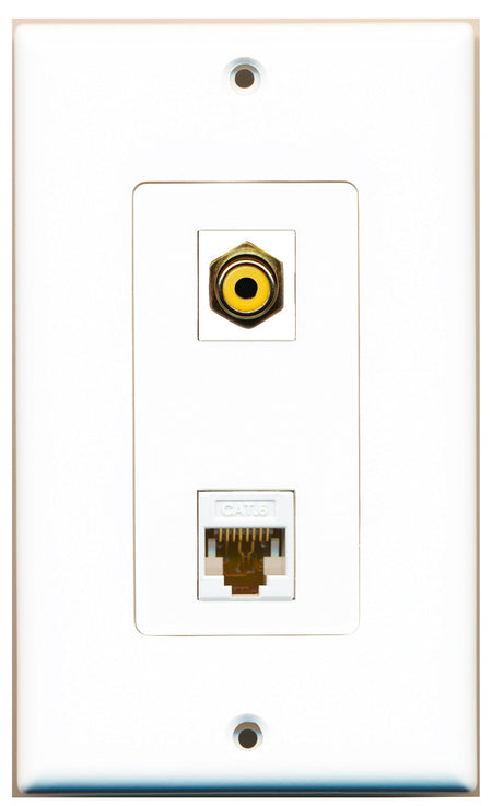 RiteAV 1 Port RCA Yellow 1 Port Cat6 White Wall Plate OVERSIZED White