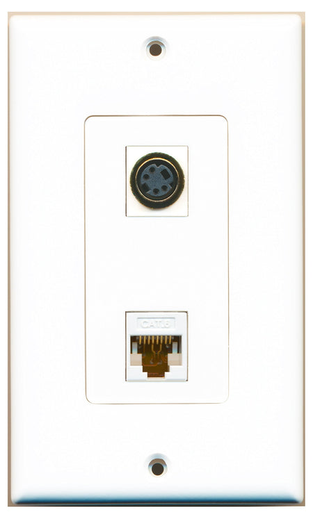 RiteAV 1 Port S-Video 1 Port Cat6 White Wall Plate OVERSIZED White