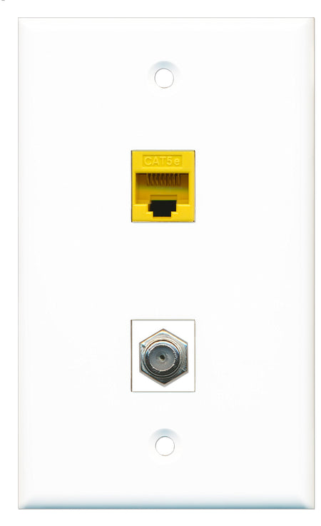 RiteAV - 1 Port Coax 1 Port Cat5e Yellow Wall Plate - Bracket Included