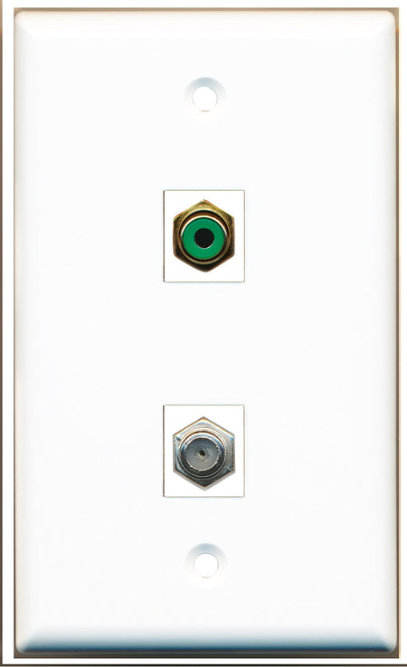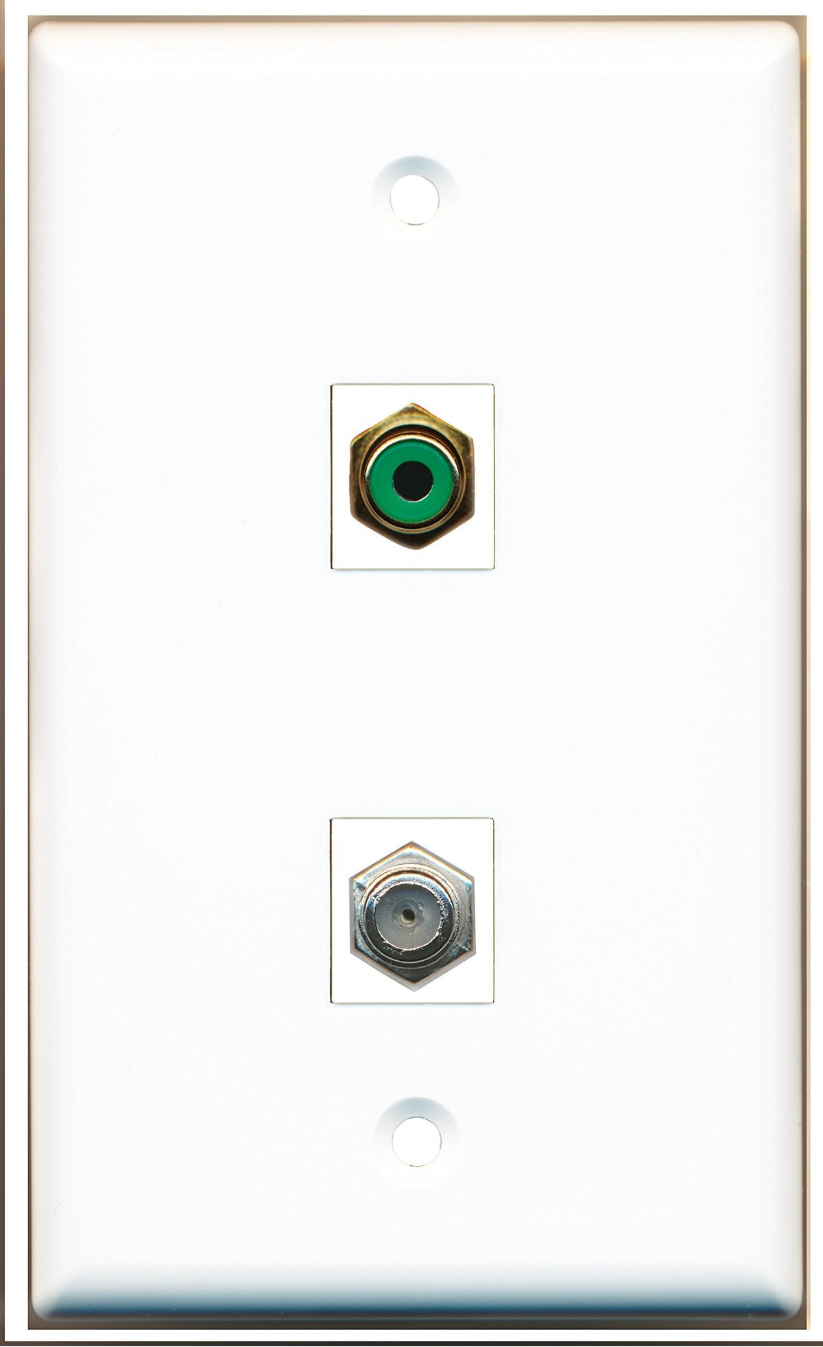 RiteAV - 1 Port RCA Green 1 Port Coax Wall Plate - Bracket Included