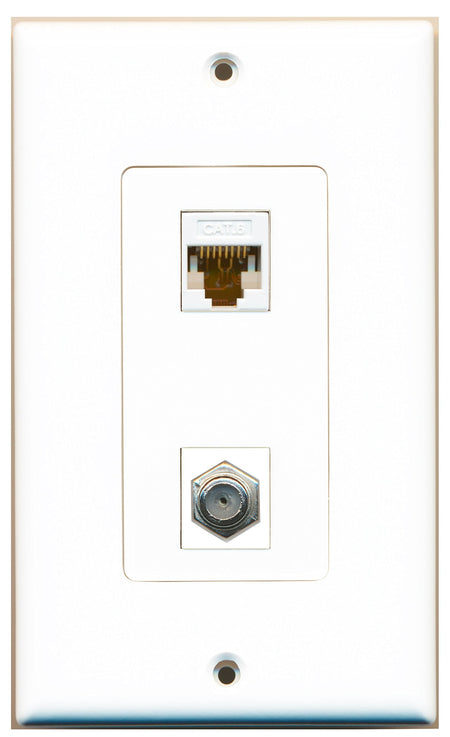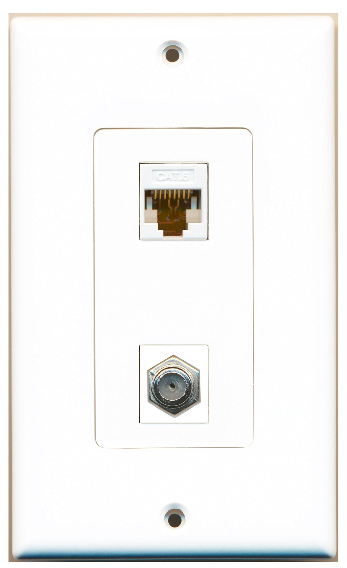 RiteAV 1 Port Coax 1 Port Cat6 White Type Wall Plate OVERSIZED