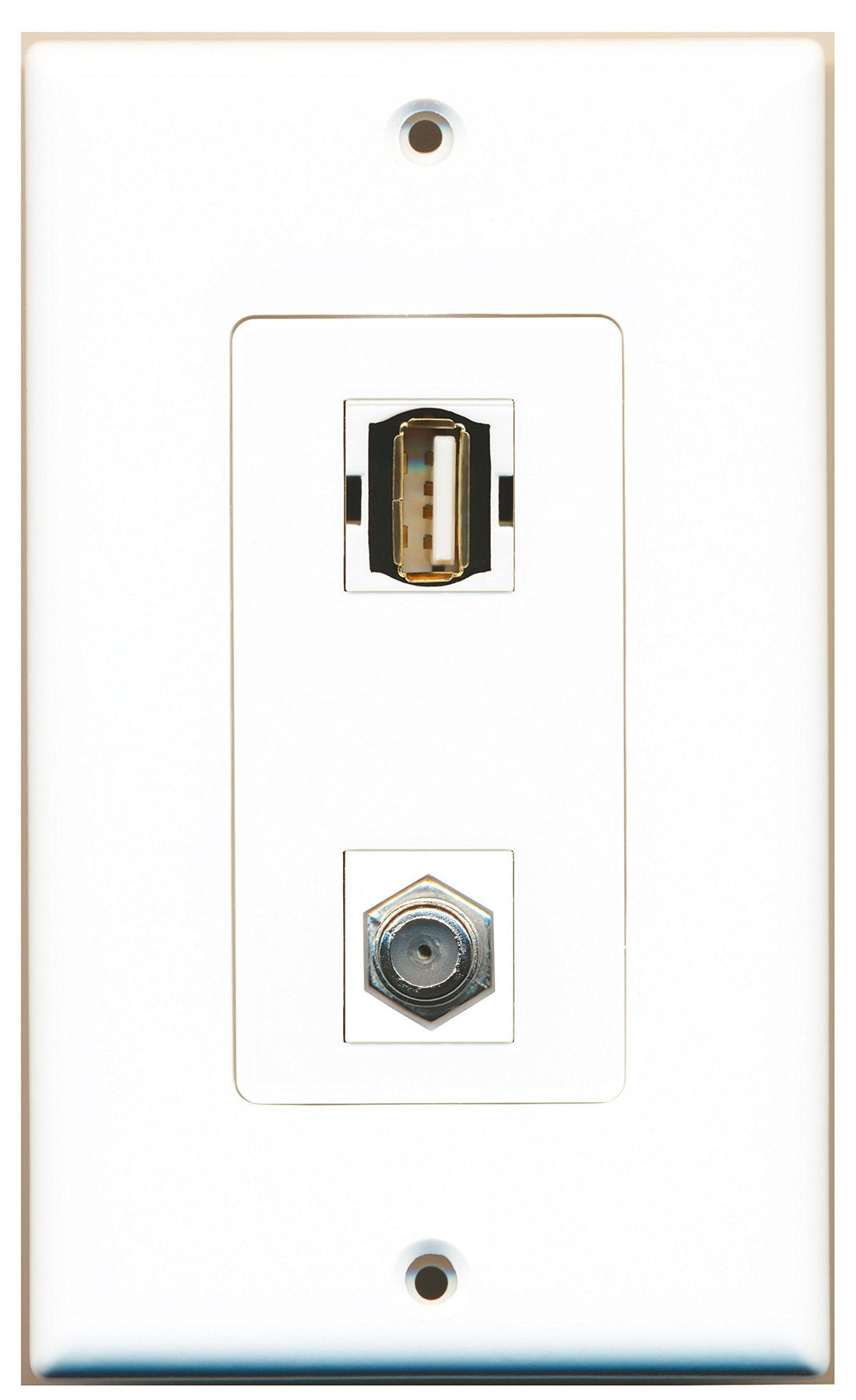 RiteAV 1 Port Coax 1 Port USB A-A Type Wall Plate OVERSIZED