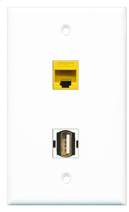 RiteAV - 1 Port USB A-A 1 Port Cat5e Yellow Wall Plate - Bracket Included