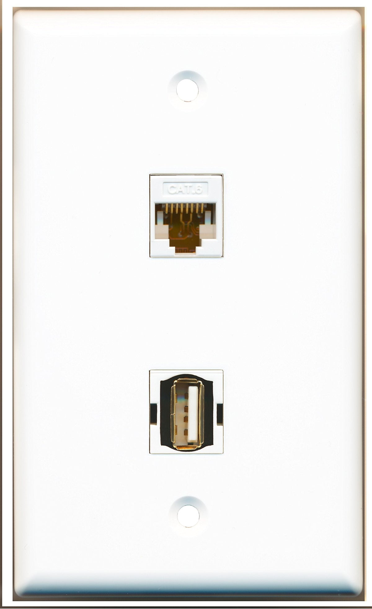RiteAV - 1 Port USB A-A 1 Port Cat6 White Wall Plate - Bracket Included
