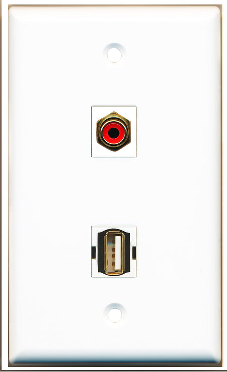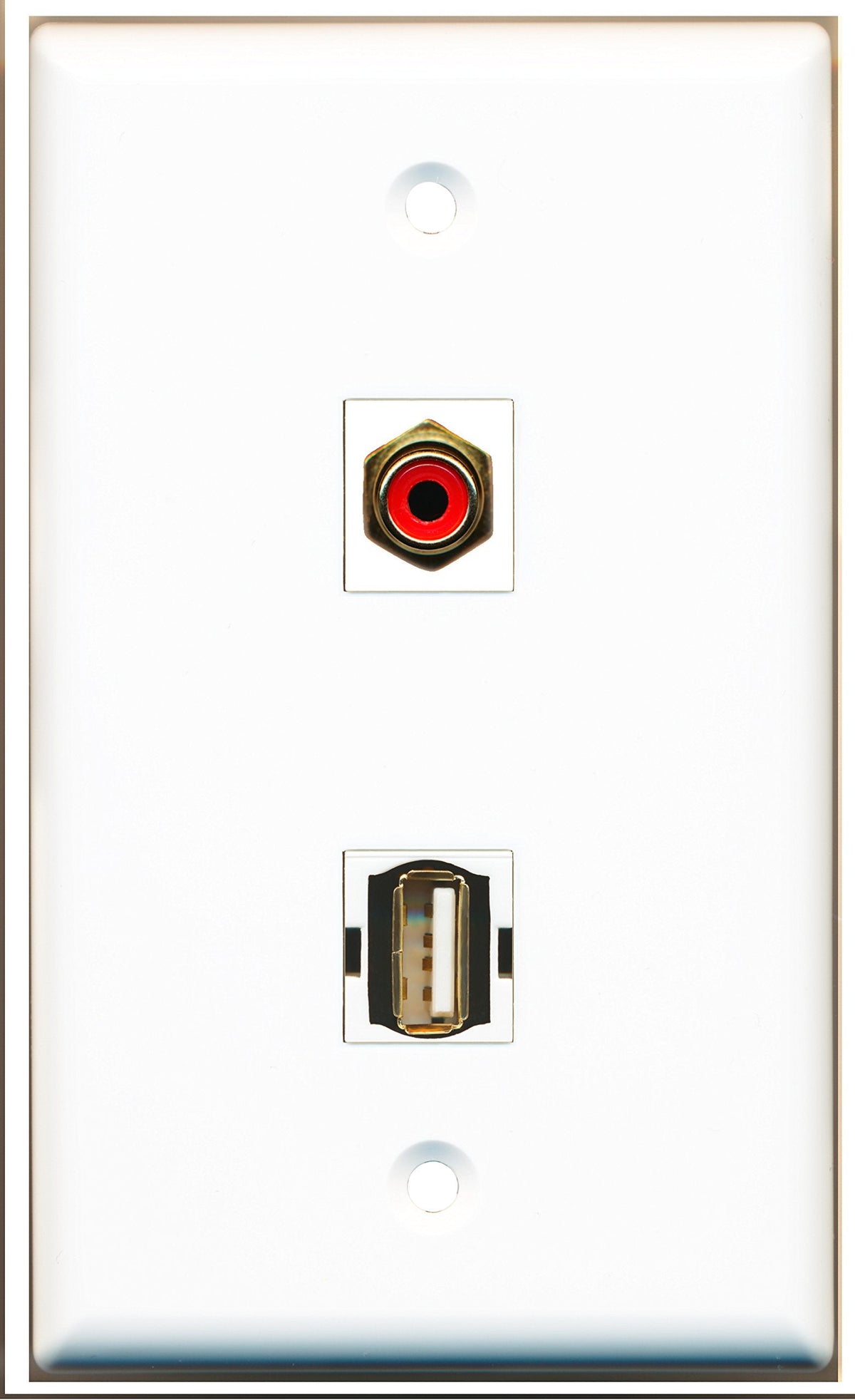 RiteAV - 1 Port RCA Red 1 Port USB A-A Wall Plate - Bracket Included