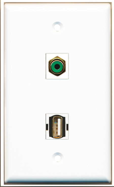 RiteAV - 1 Port RCA Green 1 Port USB A-A Wall Plate - Bracket Included