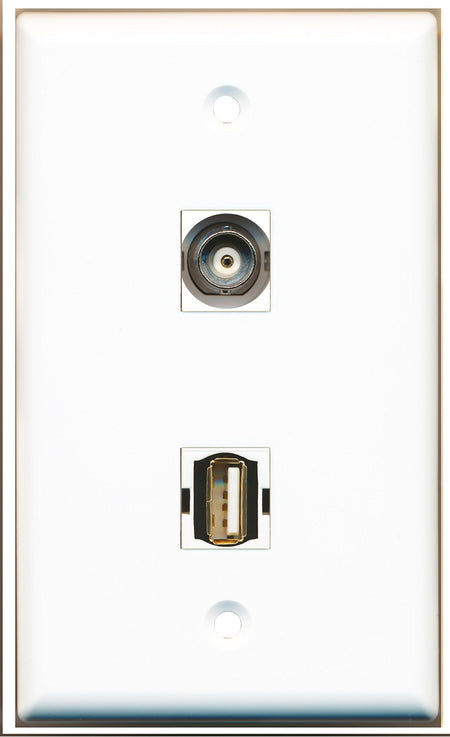 RiteAV - 1 Port USB A-A 1 Port BNC Wall Plate - Bracket Included
