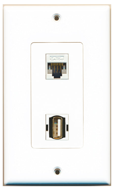 RiteAV 1 Port USB A-A 1 Port Cat5e White Type Wall Plate OVERSIZED