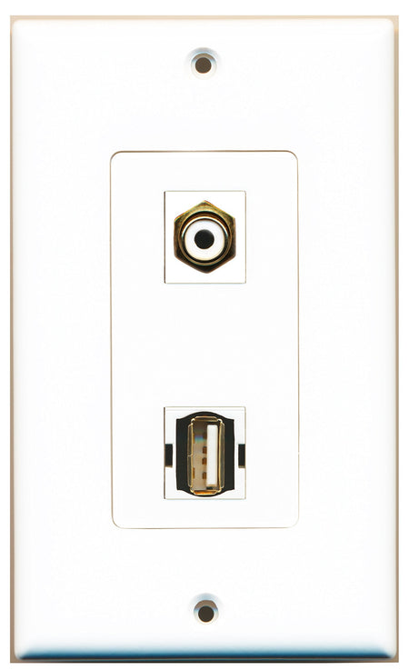 RiteAV 1 Port RCA White 1 Port USB A-A Type Wall Plate OVERSIZED