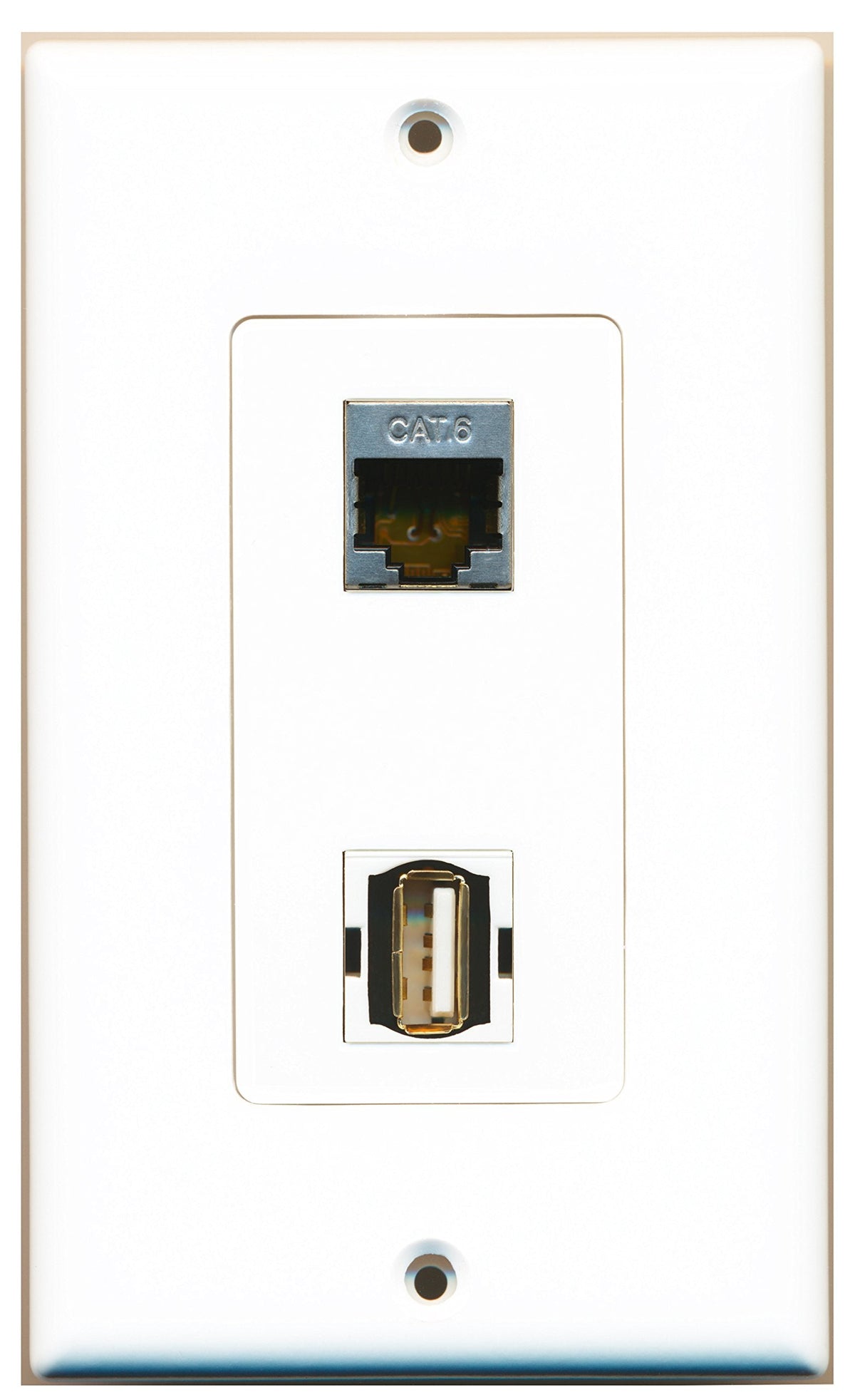 RiteAV 1 Port USB A-A 1 Port Shielded Cat6 Type Wall Plate OVERSIZED