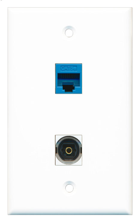 RiteAV - 1 Port Toslink 1 Port Cat5e Blue Wall Plate - Bracket Included