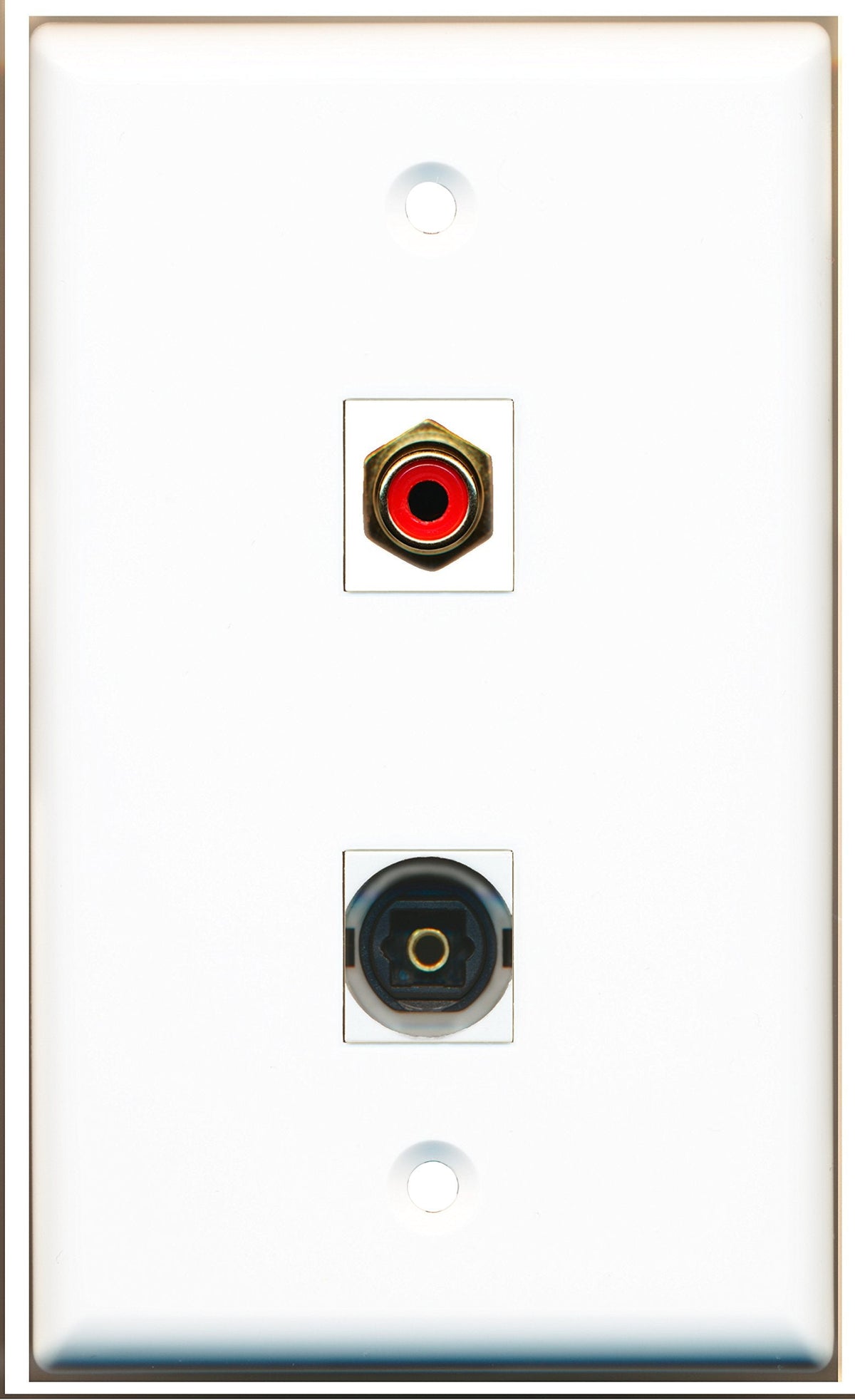 RiteAV - 1 Port RCA Red 1 Port Toslink Wall Plate - Bracket Included