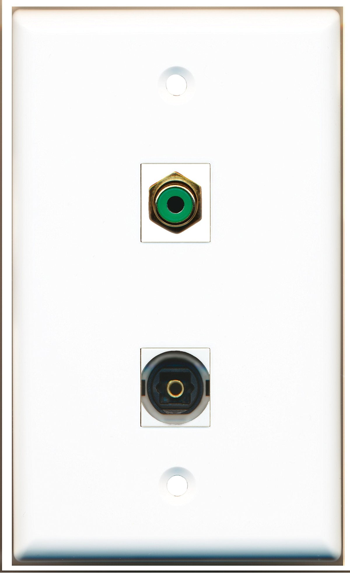 RiteAV - 1 Port RCA Green 1 Port Toslink Wall Plate - Bracket Included