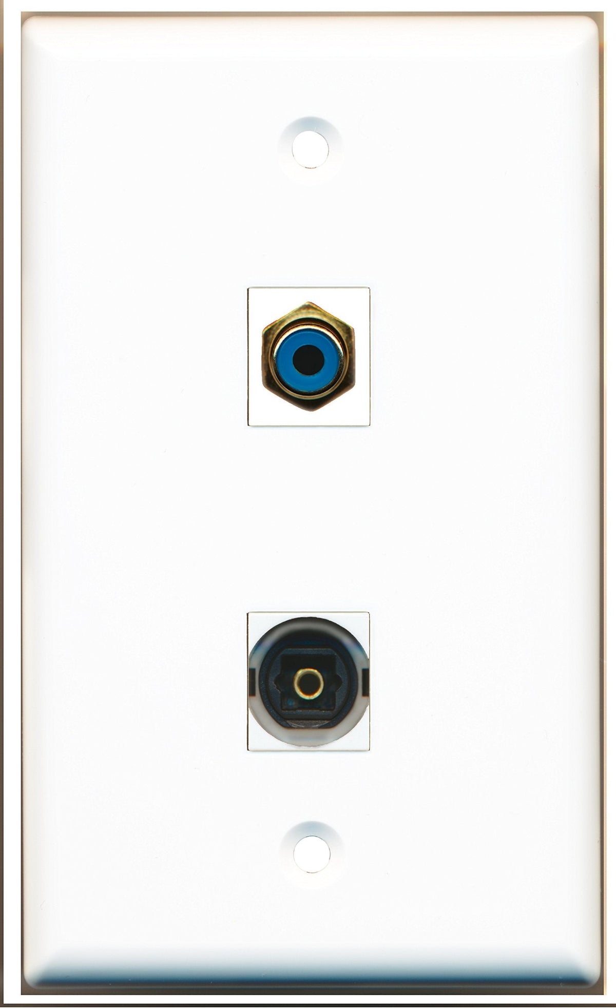 RiteAV - 1 Port RCA Blue 1 Port Toslink Wall Plate - Bracket Included