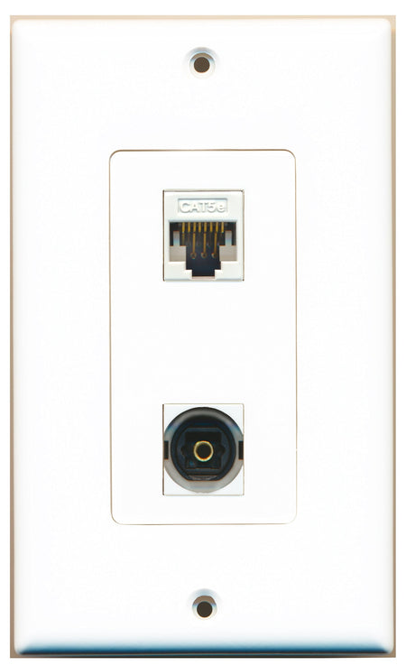 RiteAV 1 Port Toslink 1 Port Cat5e White Type Wall Plate OVERSIZED