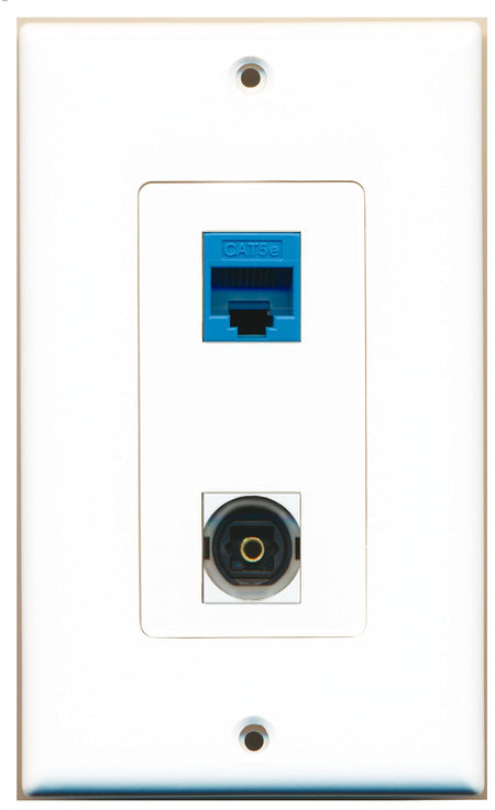 RiteAV 1 Port Toslink 1 Port Cat5e Blue Type Wall Plate OVERSIZED
