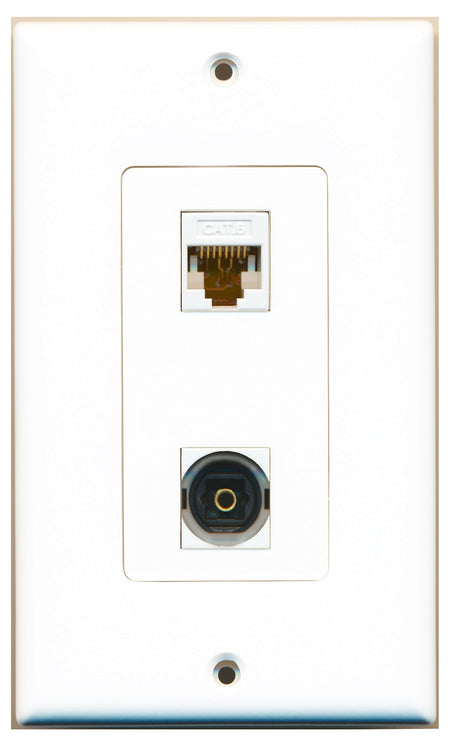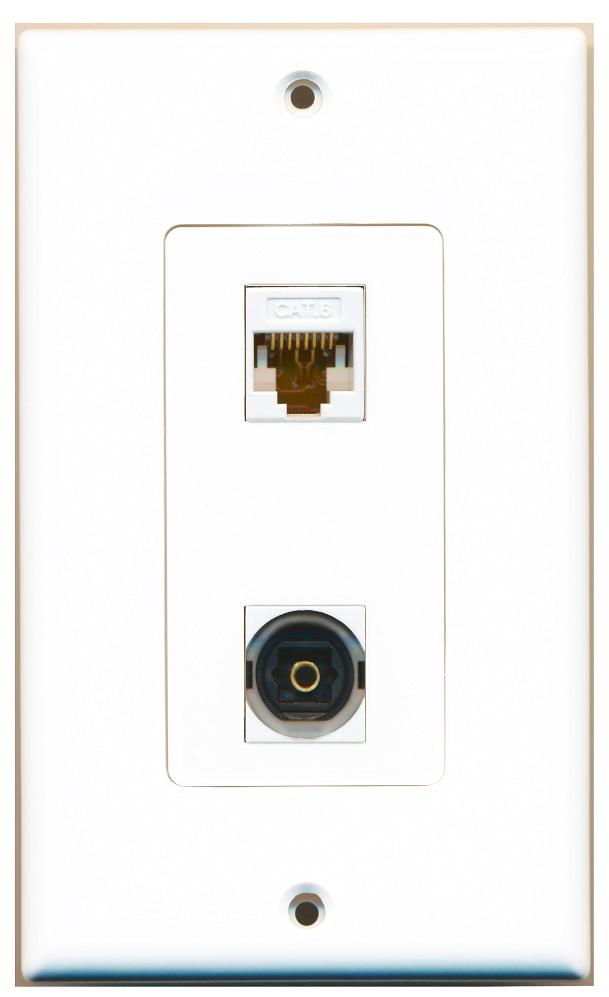 RiteAV 1 Port Toslink 1 Port Cat6 White Type Wall Plate OVERSIZED