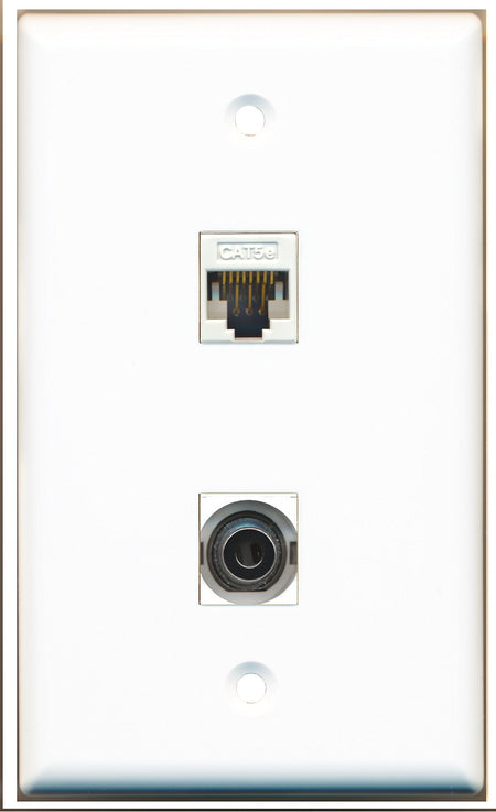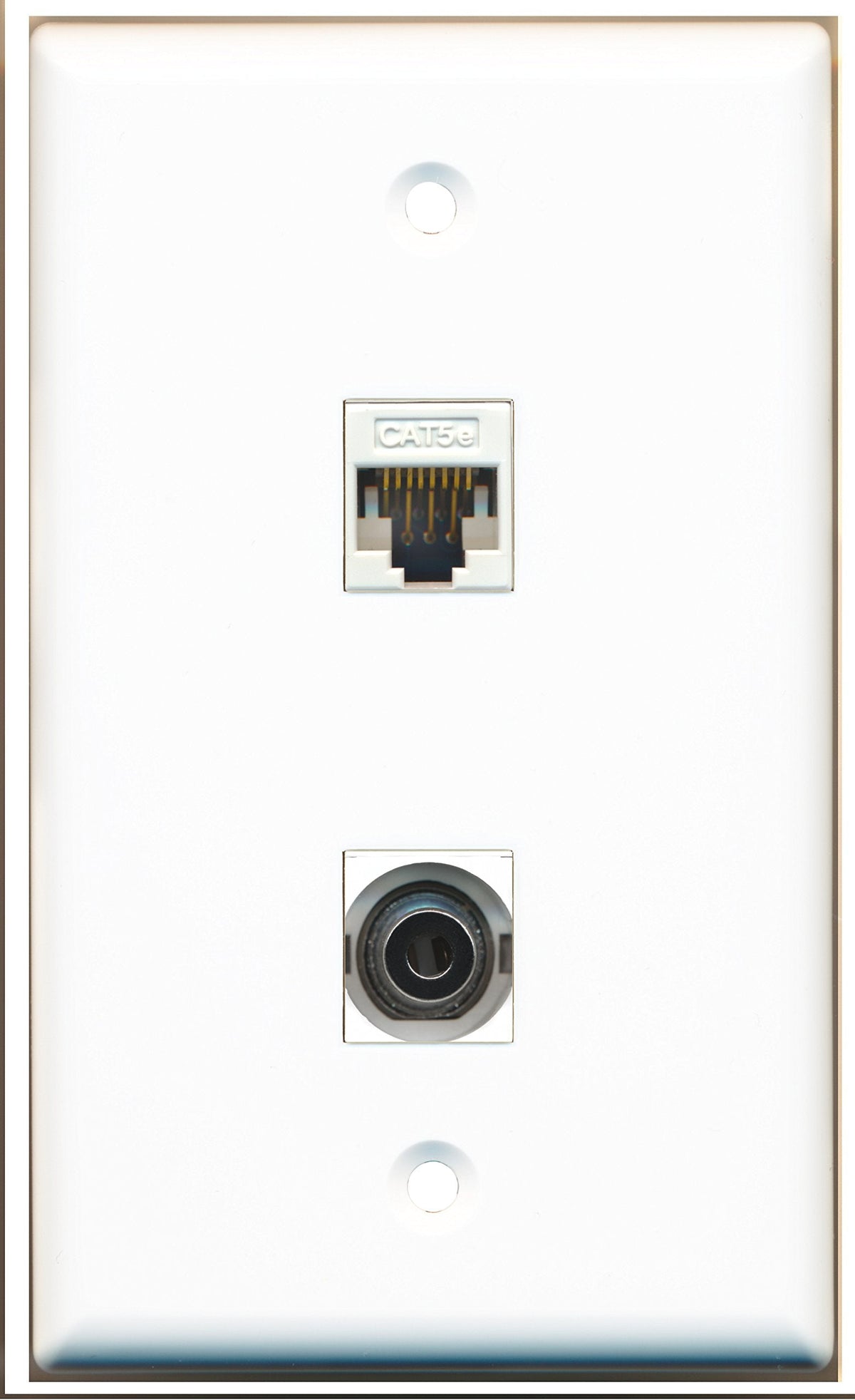 RiteAV - 1 Port 3.5mm 1 Port Cat5e White Wall Plate - Bracket Included
