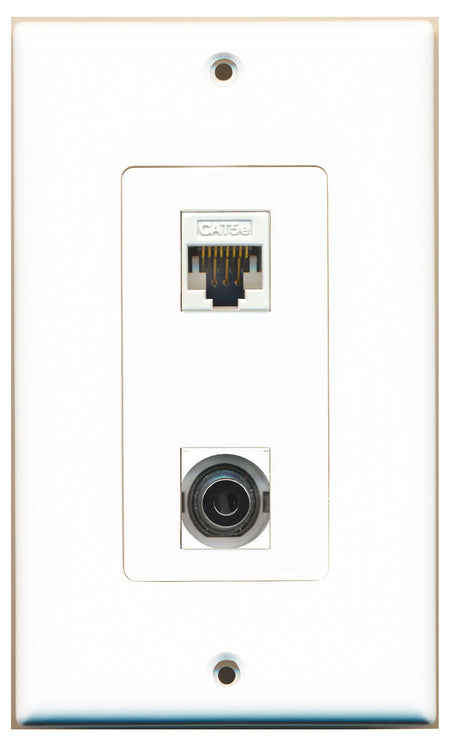 RiteAV 1 Port 3.5mm 1 Port Cat5e White Type Wall Plate OVERSIZED
