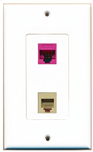 RiteAV 1 Port Phone RJ11 RJ12 Beige 1 Port Cat5e Pink Type Wall Plate OVERSIZED