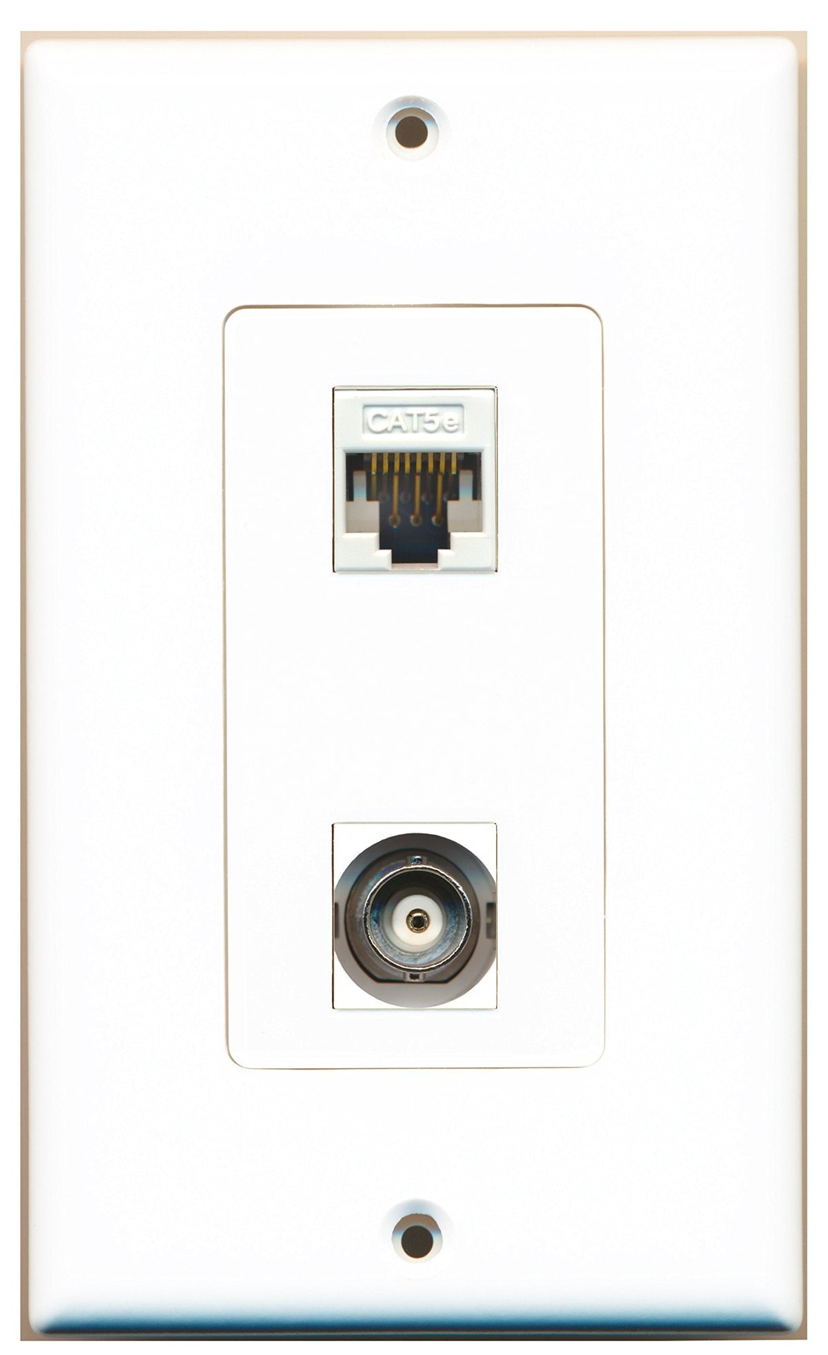 RiteAV 1 Port BNC 1 Port Cat5e White Type Wall Plate OVERSIZED