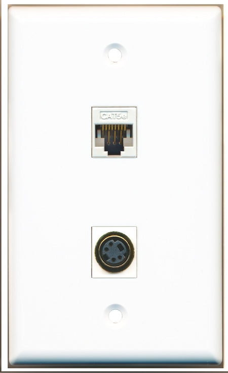 RiteAV - 1 Port S-Video 1 Port Cat5e White Wall Plate - Bracket Included