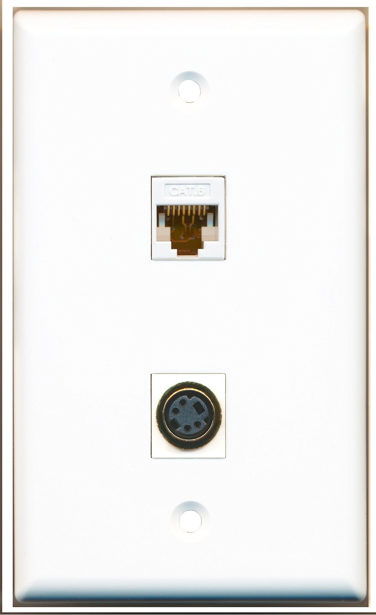 RiteAV - 1 Port S-Video 1 Port Cat6 White Wall Plate - Bracket Included
