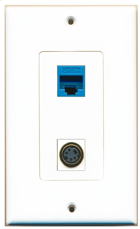 RiteAV 1 Port S-Video 1 Port Cat5e Blue Type Wall Plate OVERSIZED