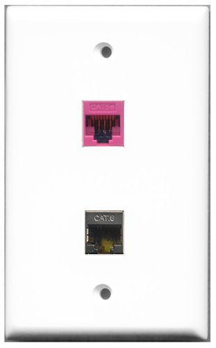 RiteAV - 1 Port Shielded Cat6 1 Port Cat5e Pink Wall Plate - Bracket Included