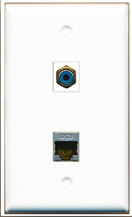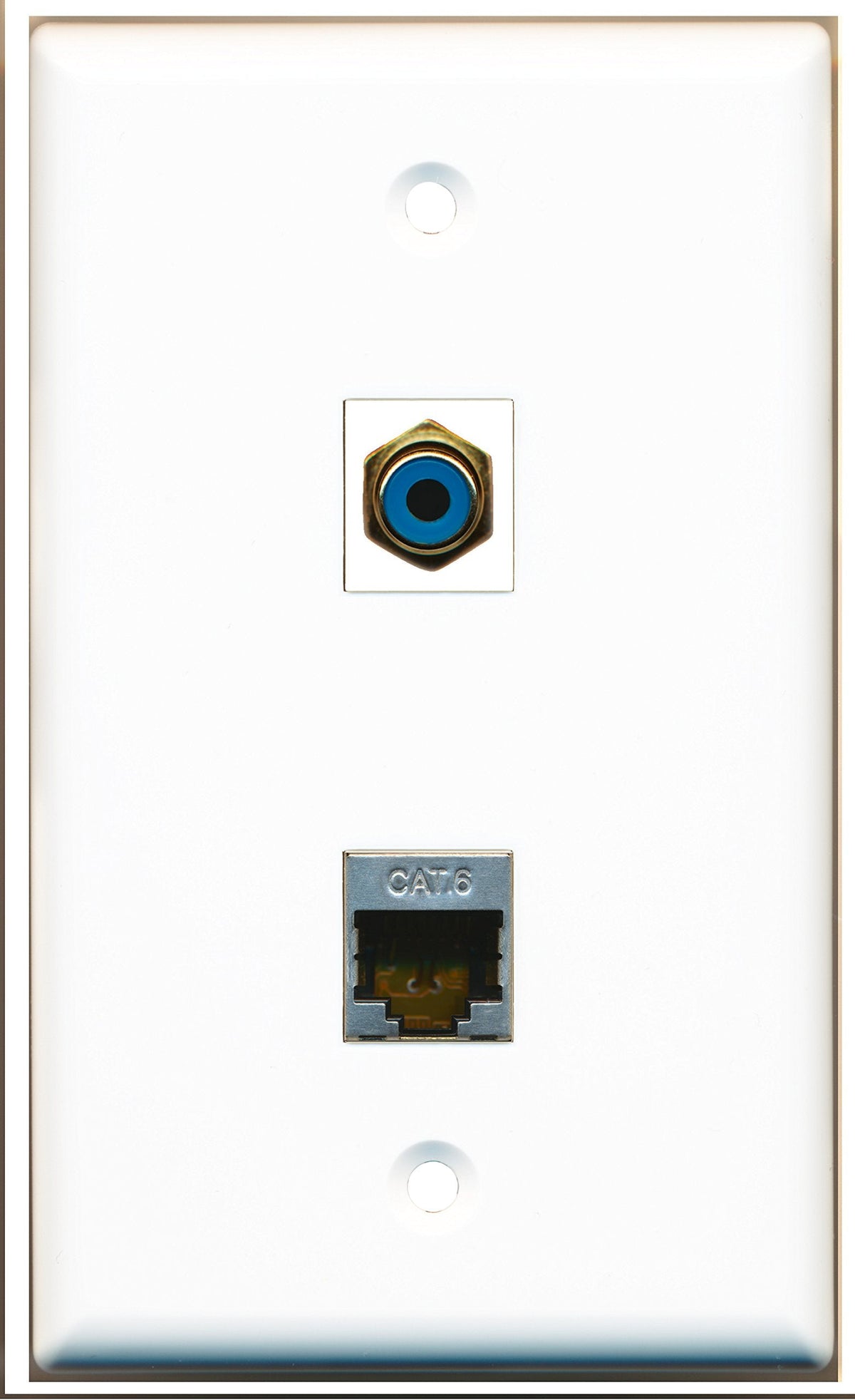 RiteAV - 1 Port RCA Blue 1 Port Shielded Cat6 Wall Plate - Bracket Included