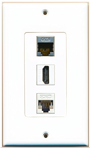 RiteAV 1 Port HDMI 1 Shielded Cat6 Ethernet 1 Cat5e Ethernet White Wall Plate OVERSIZED