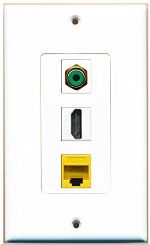 RiteAV - 1 Port HDMI and 1 Port RCA Green and 1 Port Cat5e Ethernet Yellow Wall Plate Decora