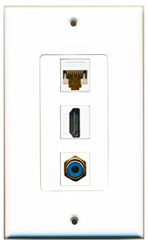 RiteAV - 1 Port HDMI and 1 Port RCA Blue and 1 Port Cat6 Ethernet White Wall Plate Decora