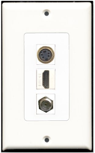 RiteAV - 1 Port HDMI and 1 Port Coax Cable TV- F-Type and 1 Port S-Video Wall Plate Decora