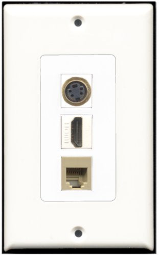 RiteAV - 1 Port HDMI and 1 Port Phone RJ11 RJ12 Beige and 1 Port S-Video Wall Plate Decora